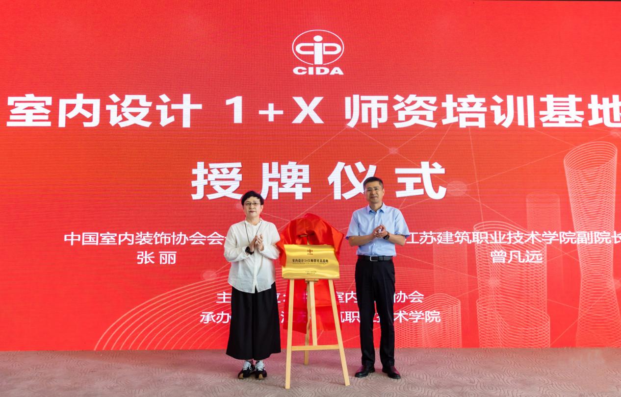 随后,由张丽会长和曾凡远副院长共同为室内设计1+X师资培训基地揭牌,王东明秘书长宣布成立室内设计职业技能等级证书江苏省工作委员会并为执行主任孙亚峰教授和副主任徐敏教授、陈鑫教授颁发聘书。